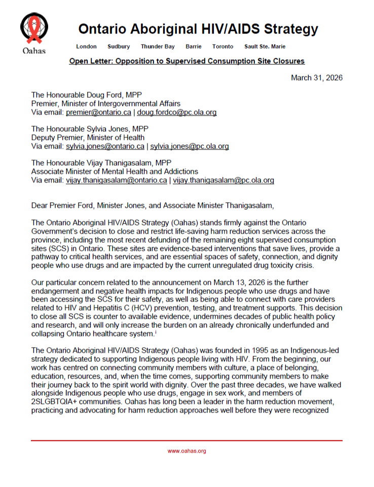 Rooted in the leadership and wisdom of Indigenous People Living with HIV, Oahas envisions a future beyond HIV and STBBI transmission and stigma — a future abundant in the rights, ceremonies, and knowledges of Indigenous peoples.